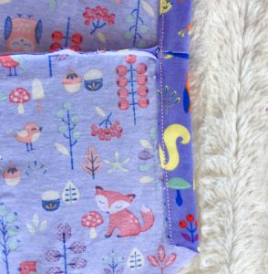 Für fast alle Nähte habe ich hier übrigens den Dreifach-Geradestich verwendet, das ist ein besonders reißfester Stich, der sich für dehnbare Stoffe gut eignet. Du kannst aber auch einen anderen Stich verwenden, z.B. einen Zickzack-Stich mit kleiner Stichbreite oder einen anderen elastischen Stich deiner Nähmaschine.